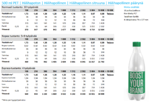 Kaikki pullot on valmistettu kierrätetystä PET muovista ja ovat 100% kierrätettäviä pantin vuoksi.