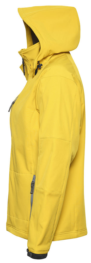 Softshelltakki, jossa kontrastivärinen mikrofleecevuori. Tuulta ja vettä hylkivä (WP3000/MVP2000). Säädettävä huppu ja hihansuissa tarrakiinnitys. Hupussa ja helmassa kuminauha stopparilla. Rinta-, etu- ja hihataskut ja yksi sisätasku.